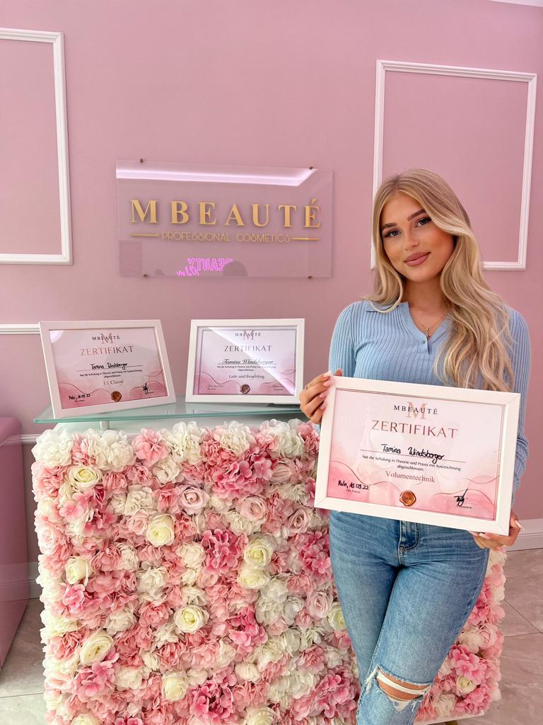 Mein Name ist Tamina Windsberger, ich bin 21 Jahre alt und komme aus Rosenheim. Ich habe im September 2022 meine Schulung für die Wimpernverlängerung, das Lashlifting und das Browlifting in Köln absolviert. Im November 2022 habe ich mein Portfolio erweitert und habe die Schulung für Permanent Make up und das Microblading in München abgeschlossen. Im Juni 2023 nahm ich an der Schulung für Remover (Permanent Make-Up Entfernung) teil.